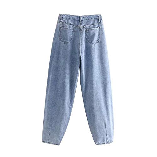 NOBRAND Las Mujeres De La Calle Plisado Mamá Vaqueros De Cintura Alta Sueltos Vaqueros Holgados Bolsillos Novio Pantalones Casual Damas De Mezclilla Pantalones Vaqueros