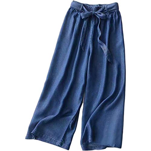 Caspar KHS020 Pantalones Largos de Verano para Mujer Hecho de Lino, Color:Azul Vaquero, Talla:S - DE36 UK8 IT40 ES38 US6