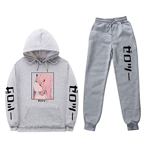 Darling In The Franxx Sudadera con Capucha, 3D Zero Two Anime Cosplay Sudaderas con Bolsillos + Pantalones Moda Casual Harajuku Zero Two Hoodie Ropa Chaqueta Tops para Hombre Mujere (7G,S)