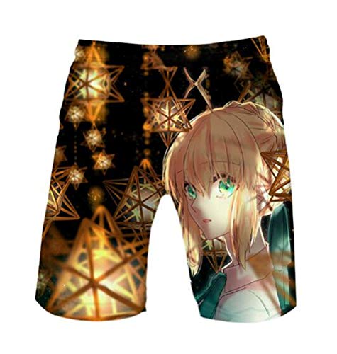 WANHONGYUE Anime Fate Zero Fate/Stay Night Trajes de Baño Shorts de Playa Hombre 3D Imprimir Pantalones Corto Beach Board Shorts Swim Trunks 1102/7 110