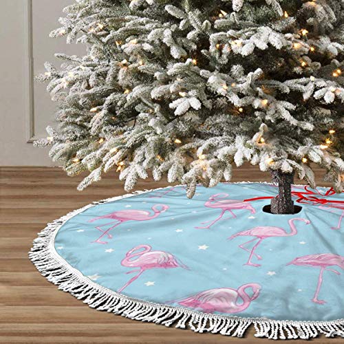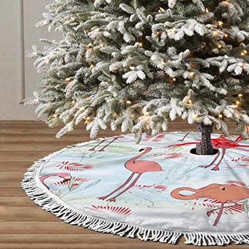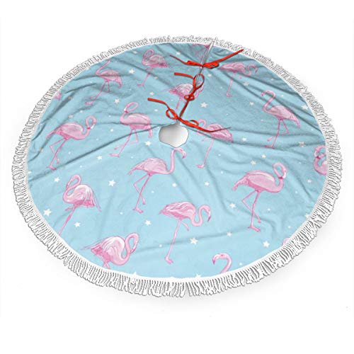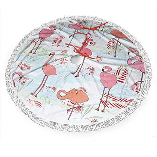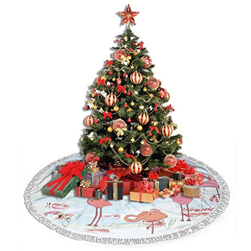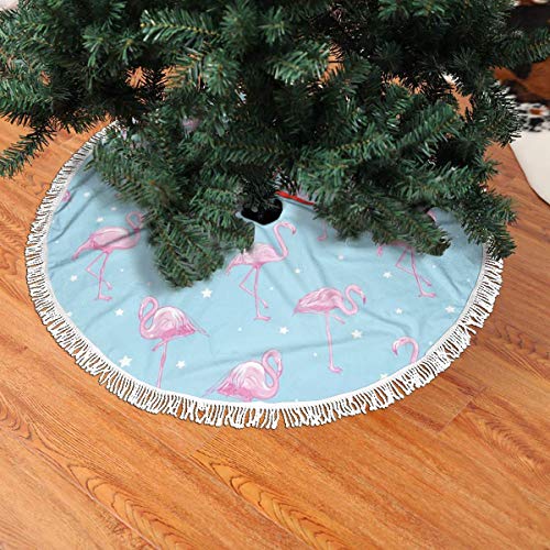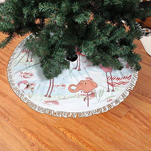 FENTINAYA Falda de árbol de Navidad con borlas, Alfombrillas de Falda de árbol con diseño de patrón de Flamenco para decoración Festiva (36 Pulgadas)