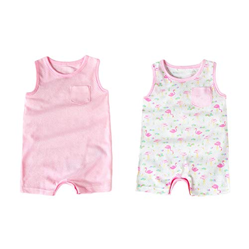 Bebé Body 2 Pcs Mamelucos Chaleco Verano Mono de Malla Pijamas Algodón Transpirable Sin Mangas Trajes Ropa Regalo Niñas Niños 2-3 años Flamenco rosa