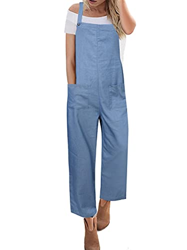 ACHIOOWA Mono para Mujer Vaquero Peto de Pantalones Casuales Ajustable Correa Rompers Largo Sin Mangas Monos de harén Mono de Pierna Ancha Overalls con Bolsillo B-Azul Claro S