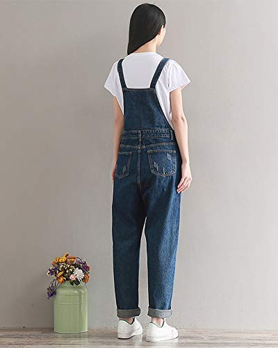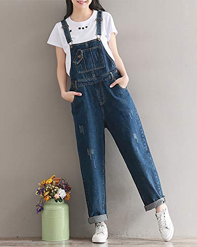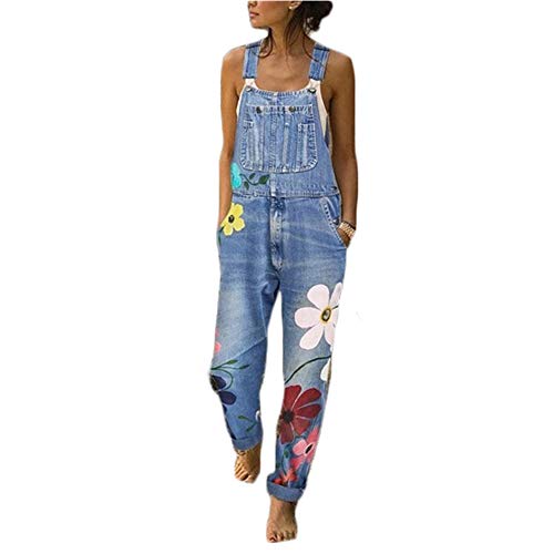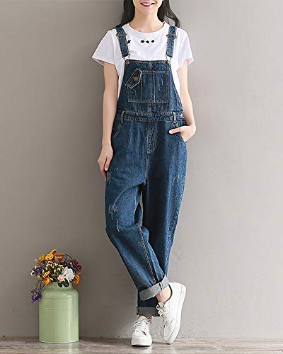 DianShaoA Mujer Peto Vaqueros Largo Casual Suelto Bolsillos Tiras Fiesta Pantalones De Babero Jumpsuit Suelto Casual Oficina Pantalone Azul 2XL