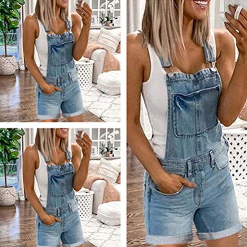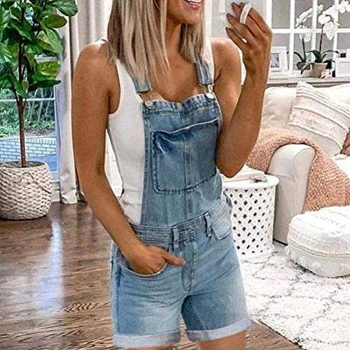 Onsoyours Mujeres de Mono Hombro de Verano para Mujer Peto Vaquero Mono de Jeans Cortos Mono Chaquetas de Traje Casual Denim Recto y Ajustado con Bolsillos A Azul XL