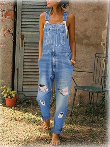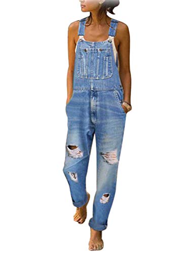 Huateng Moda para Mujer Pantalones Vaqueros desgarrados Bib Overol Peto Jeans Monos