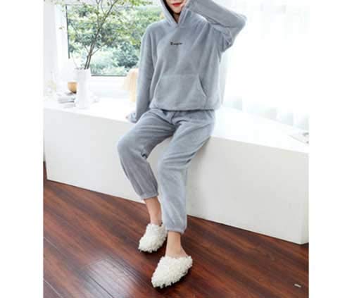 - Conjunto de pijama 2 piezas para mujer diseño simple y cómodo. La sudadera con capucha mangas largas se puede usar como ropa exterior. Los pantalones con la cintura elástica y con perneras elástica muy conveniente y práctico.