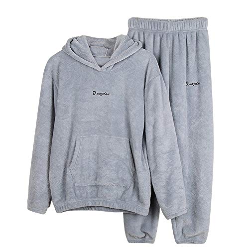 ORANDESIGNE Mujer Otoño Invierno Pijama de Dos Piezas Pijamas de Franela Suave Cálida Ropa de Dormir Pijamas de Manga Larga Gris Nube ES 38