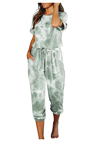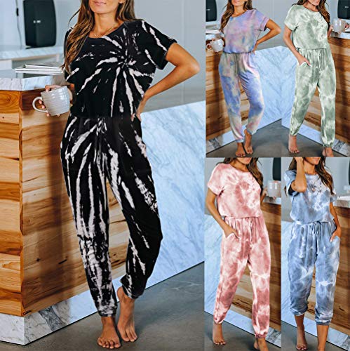Conjunto Interior Mujer Deportivo Mono Tie Dye Camiseta y Leggings Niña Ropa de Dormir Arco Iris Pijama Manga Corta Pantalon Largo Chandal Una Pieza Traje de Casa Lenceria Camison Verano