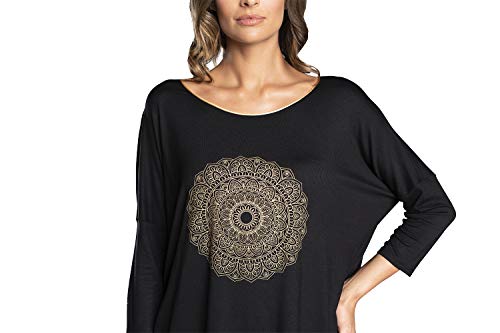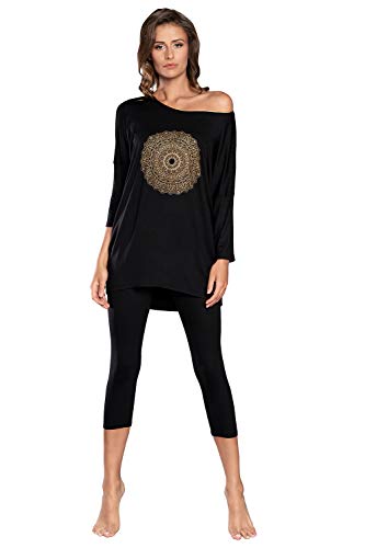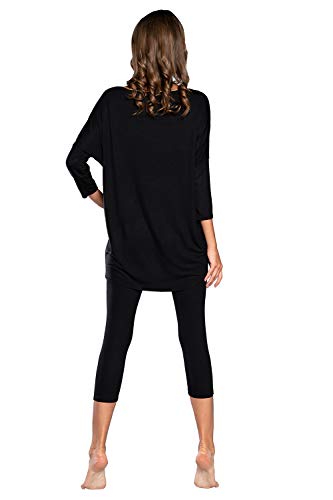 Italian Fashion IF Leggings 3/4 para mujer de dos piezas, de viscosa, elegante, sexy, cómodo pijama de verano Negro L