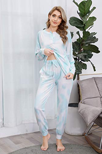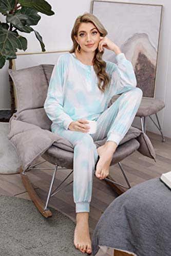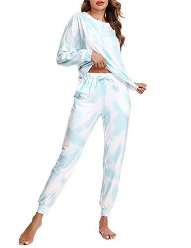 Doaraha Conjunto Pijama para Mujer Camiseta y Pantalones Tie-Dye Estampado Ropa de Dormir con Bolsillos y Puños Elásticos 2 Piezas (B# Azul, S)