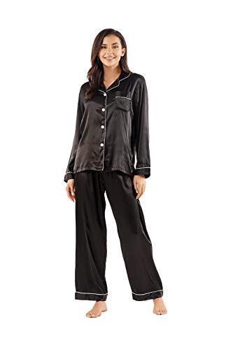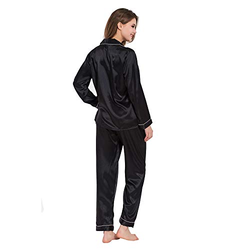 - Suave y cómodo: Clásico conjunto de pijama de satén para mujer, a la moda, sedoso, suave al tacto, cómodo; adecuado para interiores y uso en todas las estaciones. Es un regalo ideal para novias, madres, esposas, hijas, hermanas.