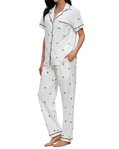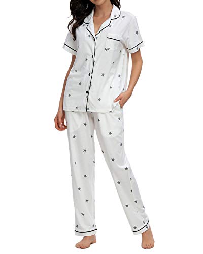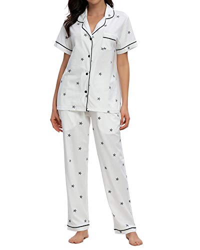 - ★La mejor opción de regalo: camisas frontales con botones con bolsillos en el pecho y cuello clásico de muescas crea un aspecto clásico y casual. Este conjunto de pijama para mujer es súper suave y suelto y los pantalones tienen una cintura elástica. Gran elección para ti, esposa, novia, novia, vestido de fiesta, ropa de noche como regalo de Navidad, cumpleaños y Año Nuevo.