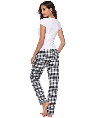 Aibrou Pantalones de Pijama Mujer 100% Algodon Pantalon Casual Largo Ropa de Dormir Suave Comodo y Suelto