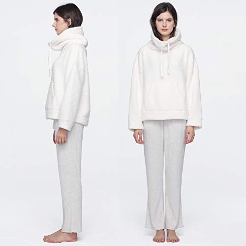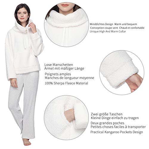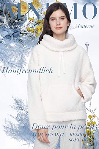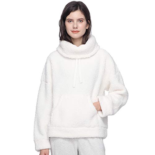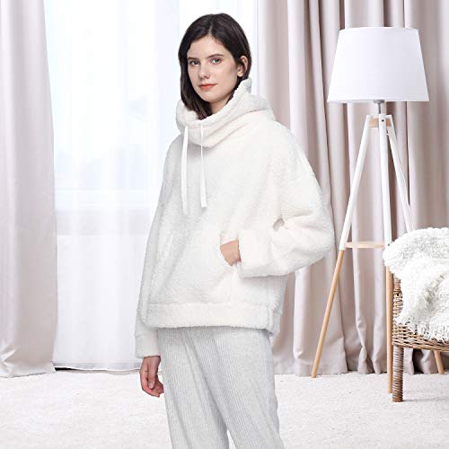 Mnemo Home Sherpa - Sudadera con capucha y forro polar para mujer Blanco XS