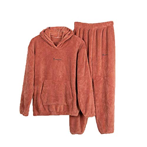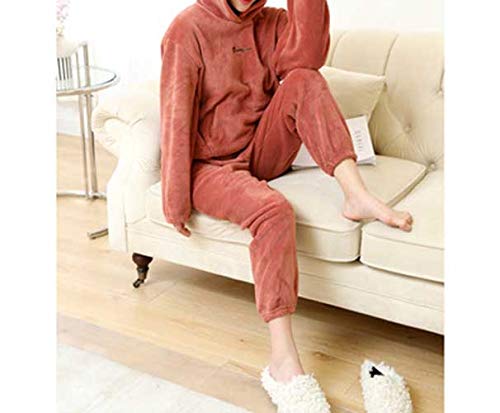 - Conjunto de pijama 2 piezas para mujer diseño simple y cómodo. La sudadera con capucha mangas largas se puede usar como ropa exterior. Los pantalones con la cintura elástica y con perneras elástica muy conveniente y práctico.