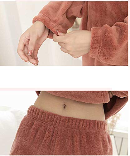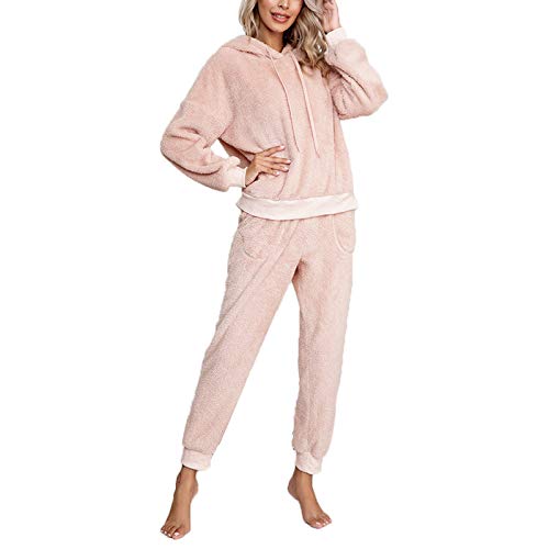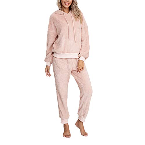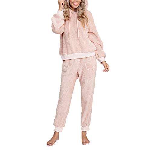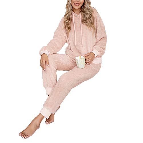 Pijama Mujer Invierno Ropa para Casa Forro Polar Conjunto de Pijama 2 Piezas para Mujer Sudadera de Felpa + Pantalones Largos Color Sólido (Rosa, S)