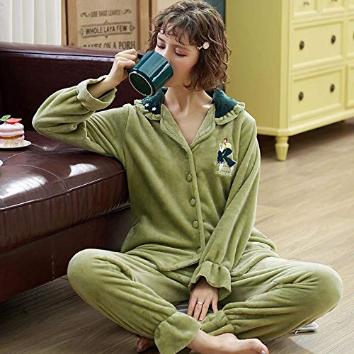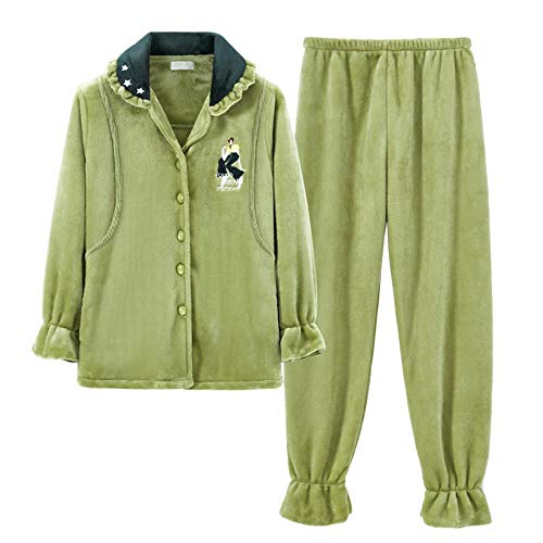 Pijamas Pijamas para Mujeres Embarazadas Servicio de hogar de Ancianos Franela de otoño e Invierno para Mujeres Ropa de confinamiento Grueso más Terciopelo Coral Pijamas de Terciopelo para d