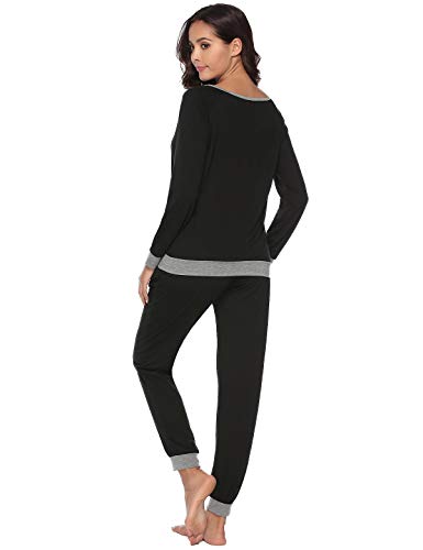 Abollria Pijama para Mujer 2 Piezas Conjuntos Camiseta y Pantalones Ropa de Casa Mujer (L, Negro)