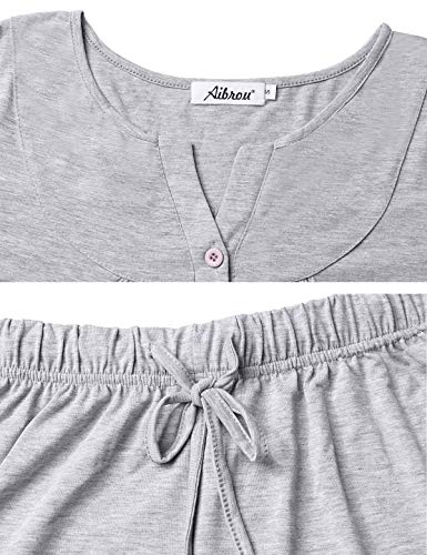 Abollria Pijamas Mujer Verano Corto delPijama Conjunto Camiseta y Pantalones 2 Piezas de Ropa de Dormir Algodón Suave Loungewear Gris-1,XXL