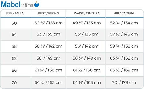 - Selecciona tu talla de acuerdo con la imagen de tallas de Mabel Íntima. La modelo mide 178 y lleva la talla 50. Ropa Mujer talla grandes cómoda y bonita.