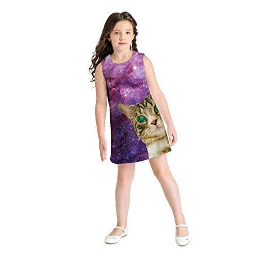 K-youth® Vestido para niña Fiesta Vestidos de Dibujos Animados de impresión en 3D sin Mangas para niños pequeños Ropa para niñas Casual Chicas Vestido de Playa Verano de 7 a 10 años Ninas