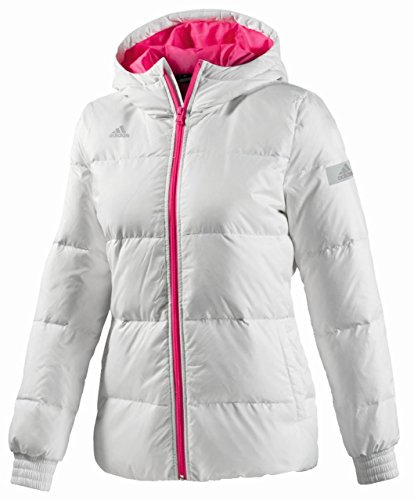 adidas - Abrigo plumífero para Mujer (plumón), Mujer, Color Blanco - White/Pink Neon, tamaño Mediano