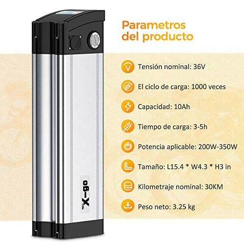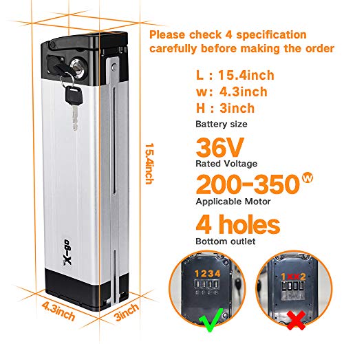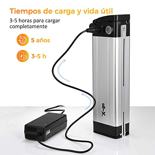 X-go Batería Eléctrica para Bicicleta, Batería De Bicicletas Eléctrica Silver Fish (36V10Ah350W)