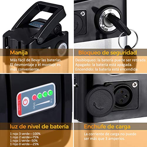 - 【Larga vida útil de la batería】 Utilizando una batería de iones de litio de alta calidad, combinada con el tablero de protección BMS de alta resistencia, la carga de la batería y el ciclo de descarga hasta 1000 veces, la vida útil de hasta 5 años, la carga completa normal de la batería tarda aproximadamente de 3 a 5 horas, distancia de línea de conducción de hasta 30 kilómetros, batería para motor de 200-350W