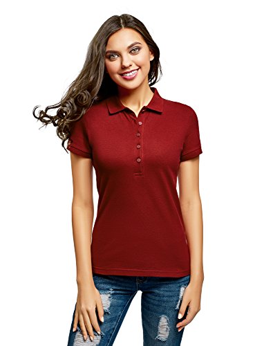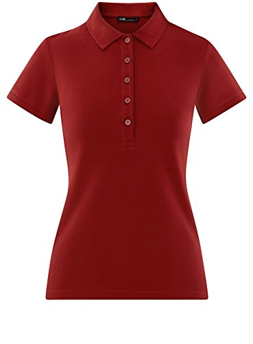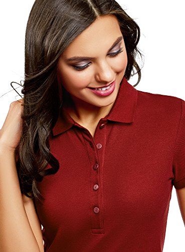 oodji Ultra Mujer Polo Básico de Tejido Piqué, Rojo, ES 34 / XXS