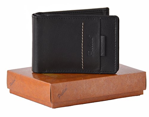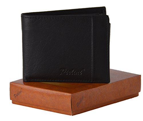 Pielini -Cartera de Caballero en Piel de Vacuno Mod 194, con Multiples departamentos y Monedero, Negro