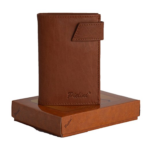 Pielini -Cartera de Caballero en Piel de Vacuno Mod 2, con Multiples departamentos y Monedero, Tan