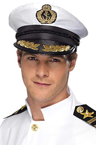 Smiffys-21734 Sombrero de capitán, con Detalle Dorado, Color Blanco, Tamaño único (Smiffy'S 21734)