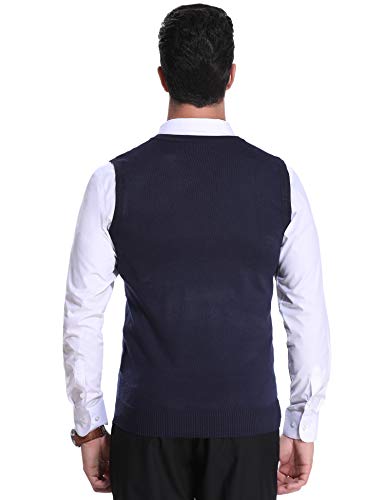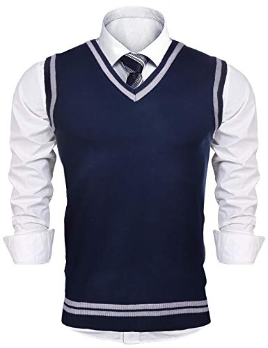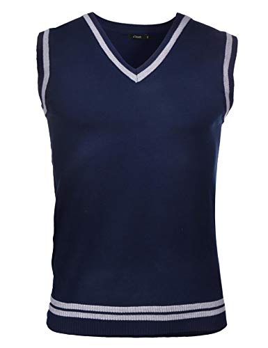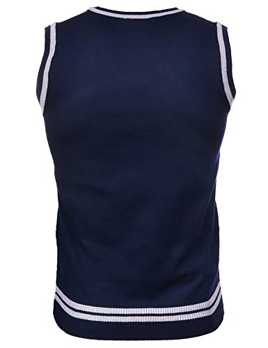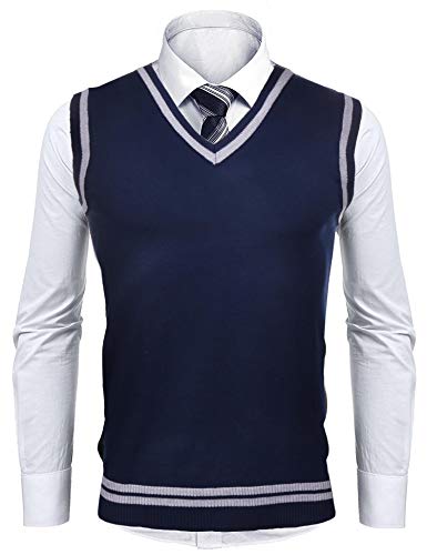 WOOKIT Suéter Tejido Suéteres de los Chalecos de Punto Chalecos de Tirantes sin Mangas Lindo Uniforme con Cuello de Pico-Azul Marino-M