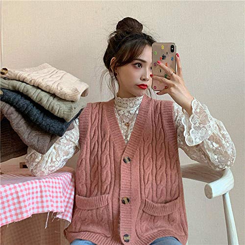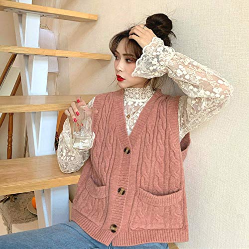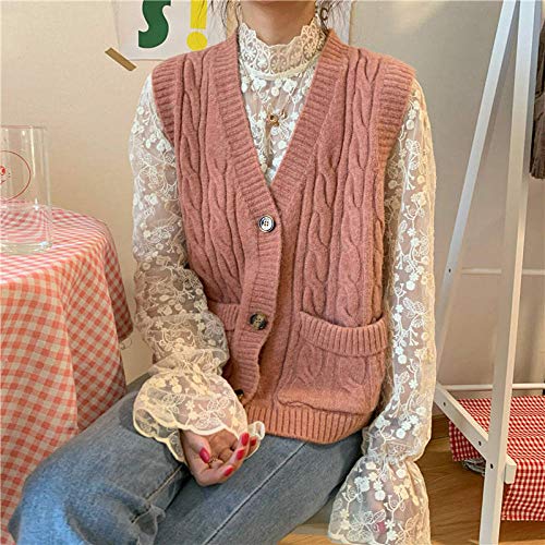 QPRER Suéter De Punto para Mujer De Primavera Y Otoño,Chaleco,Bolsillo,Cuello En V,Moda Simple,Todo Fósforo,Retro,Suave,Sin Mangas,Top (Sin Interior) Rojo,XL
