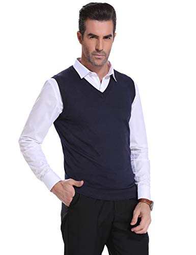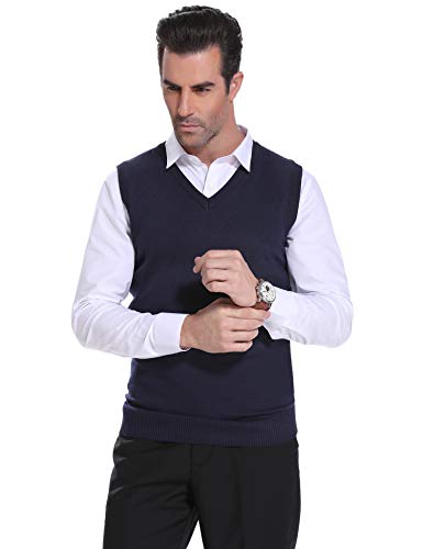 - 【Diseño】: El chalecos clásico de vestir para hombre , cuello en V, suéter de punto, dobladillo, cuello y puños de canalé. ¡Este jersey caliente es una base práctica y fácil de llevar en tu armario!