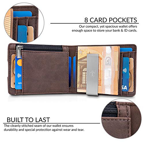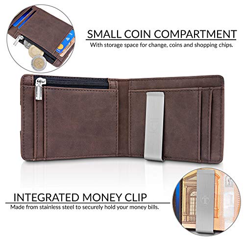 TRAVANDO Cartera con Pinza para Billetes London Bloqueo RFID - Tarjetero Hombre Slim - Billetero (Marrón)