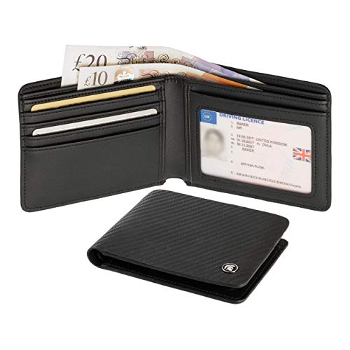 POWR - Cartera de Piel con Bloqueo RFID, de Fibra de Carbono, con Caja de Regalo