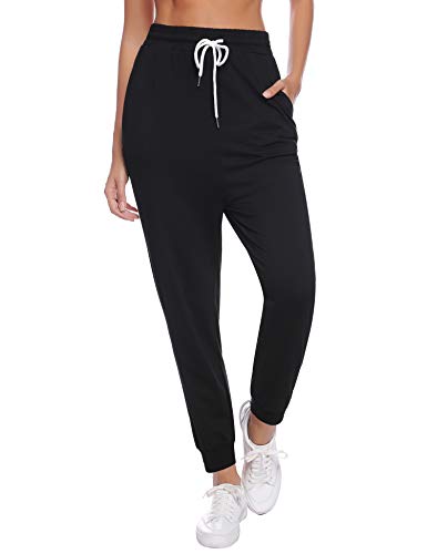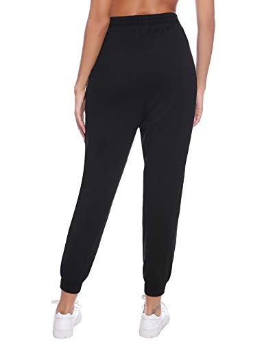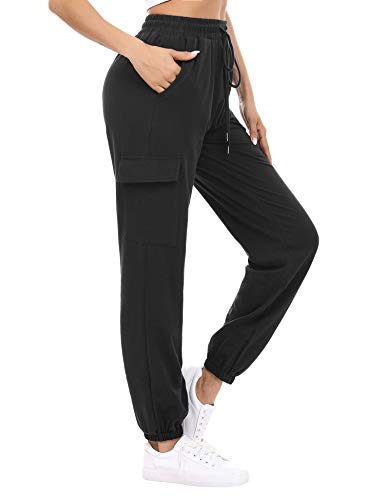 Doaraha Pantalones Deportivos Mujer Algodón Pantalón de Chándal Largo Elásticos Transpirables con Bolsillos Laterales para Deporte Gimnasio Fitness Correr (Negro, XL)