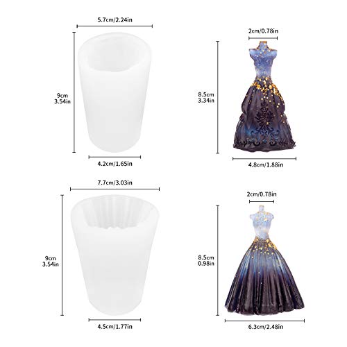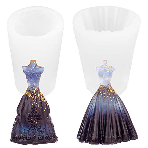 Molde de Silicona de Vela,2 piezas Molde para vestido de novia Molde de silicona en forma de vestido de novia 3D Molde de silicona para vestido de novia Molde hecho a mano para decoración artesanal
