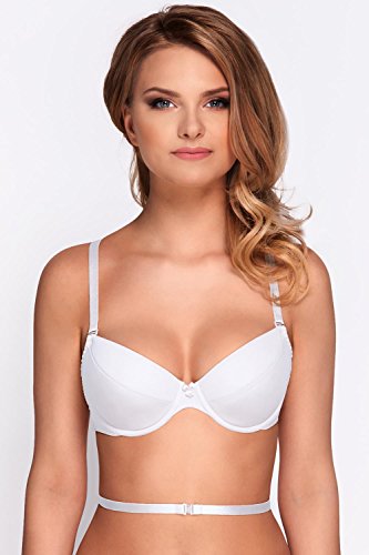 Vivisence Kate 1011 Sujetador Push-Up con Almohadillas Removibles para Mujeres Liso Tirantes Multiposición con Aros - Hecho En La UE, Blanco,100D