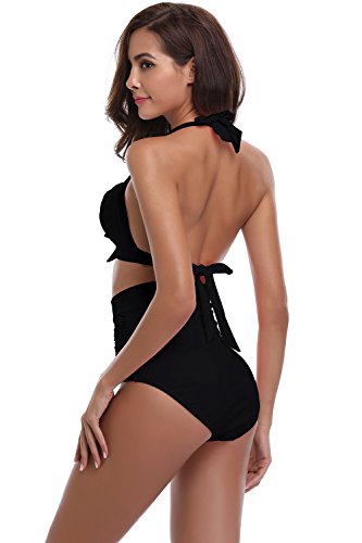 SHEKINI Mujer TriƔngulo Push up Bikini Set Cintura Alta Braguitas Arruga Trajes de BaƱa BaƱador De Dos Piezas Conjuntos (XX-Large, Negro)