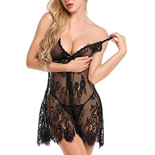 Lenceria Erotica de Mujer,SHOBDW Babydolls Lenceria Sexy Ropa Interior Vestido Camisola De Encaje Arco Tangas G String Conjunto De Ropa De Dormir De Talla Grande para Mujer(Negro,L)