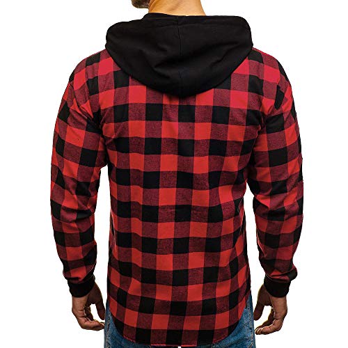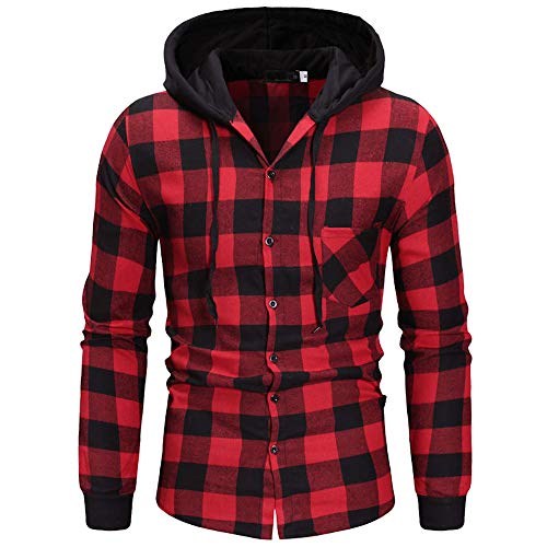 DEELIN Camisa De Manga Larga, Los Hombres De OtoñO De Invierno A Cuadros De Sudadera con Capucha Blusa De Ropa De Camisa