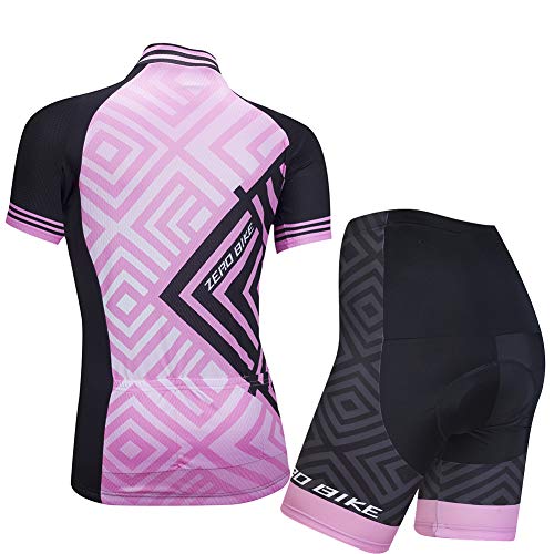 BXIO Maillot Ciclismo Mujer, Ciclismo Conjunto de Ropa con Culotte Pantalones Acolchado 3D para Deportes al Aire Libre Ciclo Bicicleta (Patrón de Punto, M)