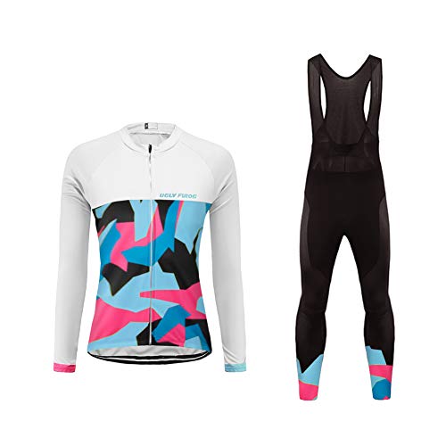 UGLYFROG Ropa Ciclismo Otoño Mujer Cicicleta de montaña Ciclismo Maillot MTB de Manga Larga y Culotte Pantalones Acolchado 3D Sets AACXWX03