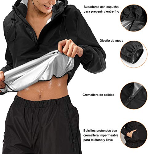 - Aumental el calor corporal, con la sudación la circulación de la sangre es acelerada lo que permite a usted eliminar las toxinas que le sobrecargan y le cansan. La particularidad de la tela hace que la tela sea impermeable, cálida y otras funciones.
