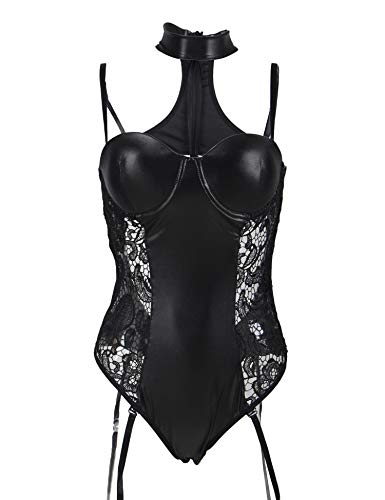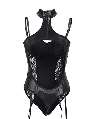 ohyeahlady Mujer Body de Cuero con Encaje Push Up con Relleno y Aros Bodysuit Top Cuero para Fiesta Talla Grande con Liguero Ropa Interior Teddy