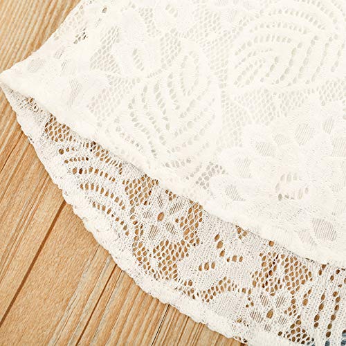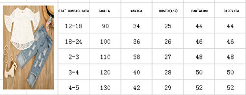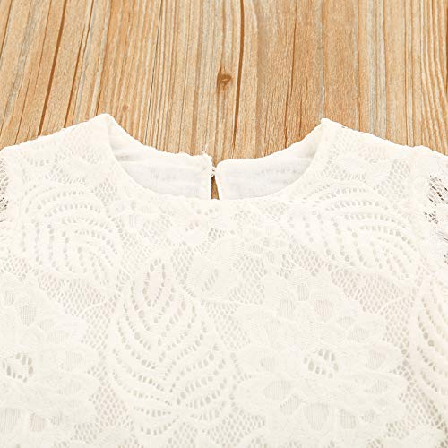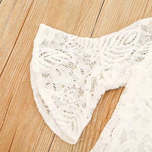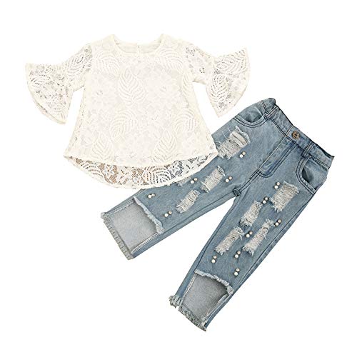 Carolilly Conjunto de 2 piezas de pelele de encaje para niña, de manga larga, caballo triangular, cuello redondo, parte superior blanca con vaqueros largos Blanco B 2-3 Años