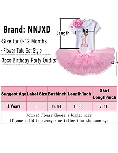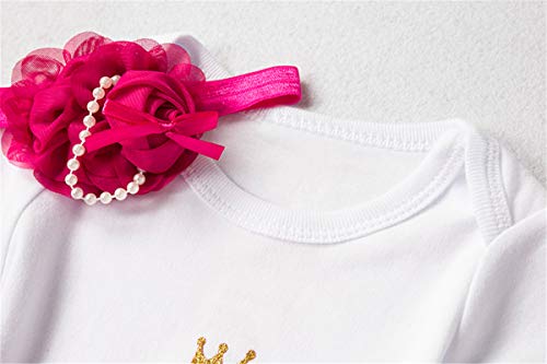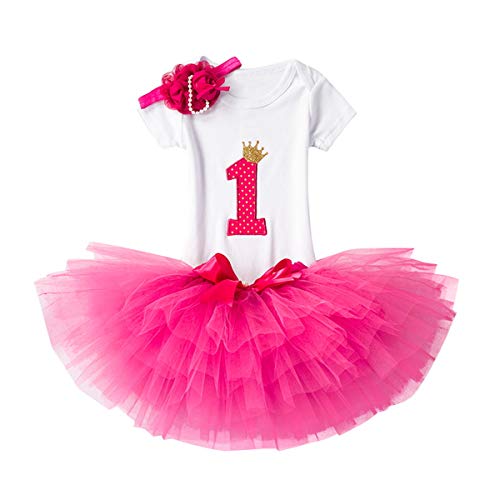 NNJXD Recién Nacida Tutú Primer Cumpleaños 3 Piezas Trajes Mameluco + Falda y Diadema Tamaño (1) 1 Año Rose Rojo